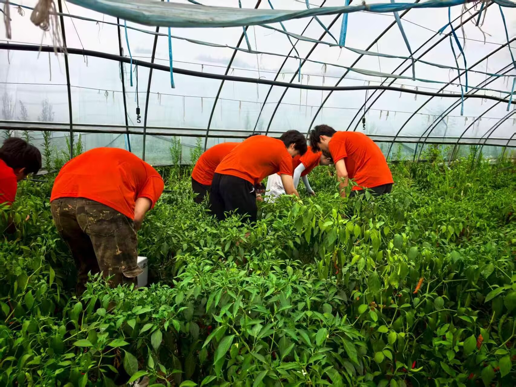 汤池村蔬菜大棚内,实践团开启沉浸式劳动教育。在40℃高温环境下,师生们俯身参与瓜藤整理、人工除草等农事操作。汗水浸透的衣衫紧贴后背,指尖沾满湿润的泥土,环能学子在躬身劳作中体悟粒粒皆辛苦的真谛。我校教师、汤池村挂职书记侯为民现场提议:未来可建立'季候性劳动课程',让大学生深度参与种植全周期,实现校地人才共育的双向奔赴。
