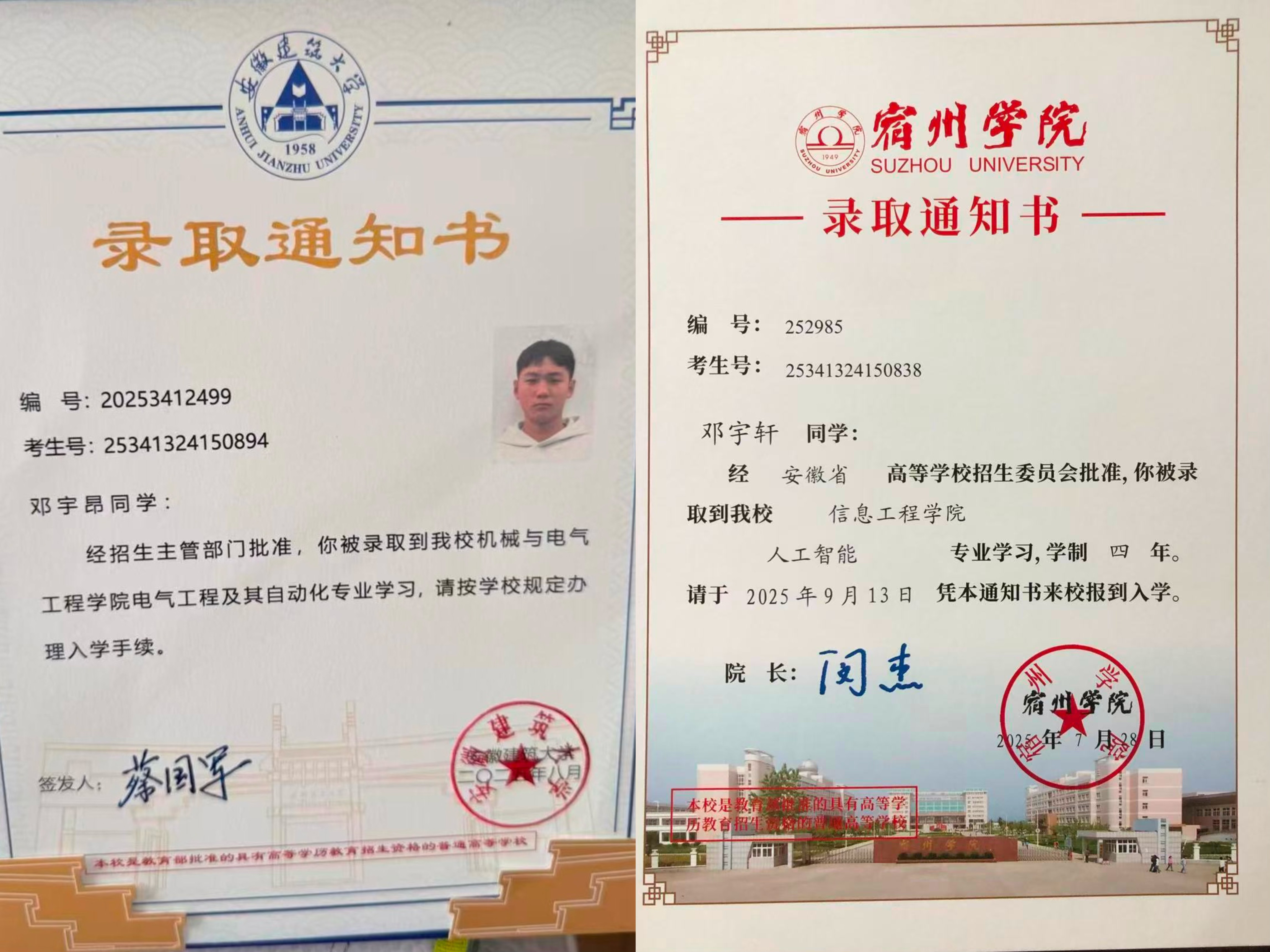 邓宇昂、邓宇轩同学的成长历程尤为动人,其父生前系东部战区空军某场站站长,2007年因公殉职,那时两兄弟出生仅十几天。多年来,兄弟俩秉承父亲遗志,以军人精神鞭策自己,刻苦学习,积极上进,成绩在班级一直居于前列。