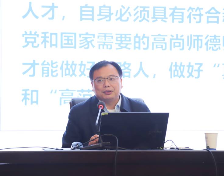 会议特邀校党委常委、副校长王佐才教授作专题辅导报告。王佐才结合其在研究生教育领域的深厚积淀,聚焦研究生导师的核心职责,深入剖析了导师的类型划分与能力素养,并围绕职业发展规划、导学关系构建与师德师风建设,系统阐述了提升育人能力的实践路径,为导师们提供了清晰指引。